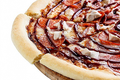 Курица, Ветчина, Моцарелла, Соус чесночный, Ананас, Тесто на итальянской муке,