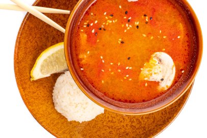Основа для Том Яма, Кокосовое молоко, Шампиньоны, Черри, Креветки, Лосось, Рис, Кунжут,
