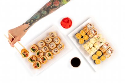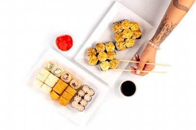 Васаби, имбирь, соевый соус 2шт, Якудза, Омлетто ролл, Темпура Барбекю, Темпура спайси с курицей, Тортилья с курицей,