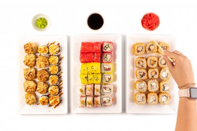 Васаби, имбирь, соевый соус 2шт, Мака Чикен, Запеченный Норико, Запеченный Киото, Омлетто ролл, Запеченная Пеппа,