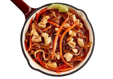 Курица, Кунжут, Морковь, Пекинская капуста, Перец болгарский , Стеклянная лапша, Соус Фирменный,