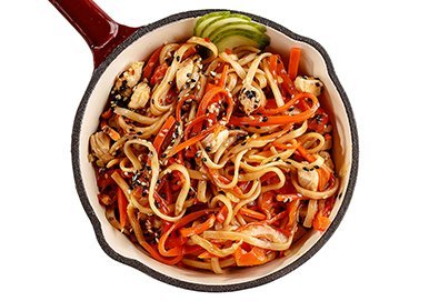 Курица, Кунжут, Морковь, Пекинская капуста, Перец болгарский , Пшеничная лапша Удон, Соус Фирменный,